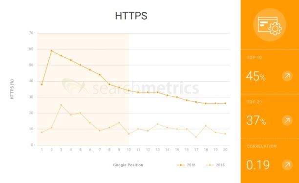 Cette étude est de plus en plus difficile à mener, car les résultats sont fortement influencés par le contexte de la recherche. Google fait appel au machine learning pour mieux comprendre les recherches, la notion de rank est de plus en plus floue. Pour cette raison, Searchmetrics se recentrera sur des études moins globales l’an prochain (c’est la dernière édition de l’enquête annuelle Ranking Factors).